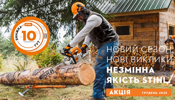 У період з 1 вересня по 31 грудня 2025 року ТОВ "Андреас Штіль" оголошує акцію (-10%), для кінцевого споживача, на бензинові ланцюгові пили STIHL: